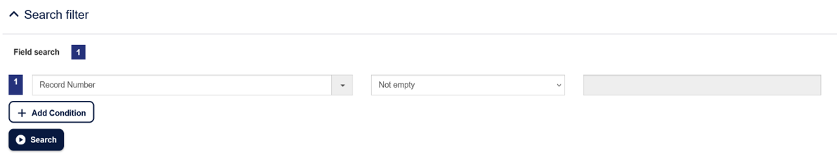 Example “all records” filter: set Record Number → Not empty in Field search