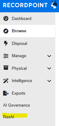 You can access RexAI directly from the RecordPoint platform: