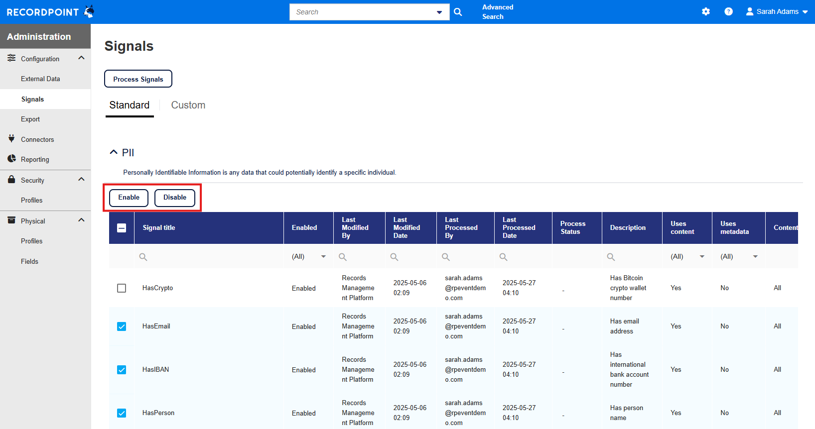 - If you select 'Disable', this signal will not process on content ingested from disablement onwards. This feature will not remove signals from previously processed content.