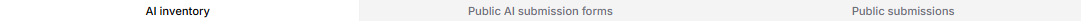 Public AI Submission Forms – Use this tab to access or manage external submission forms. These are intended for use by departments or users outside of governance or technical teams who need to submit new AI systems for review. Learn more about Public Submissions