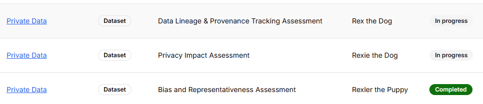 Entity – The system or dataset being assessed. Clicking the name will take you directly to its details page.
