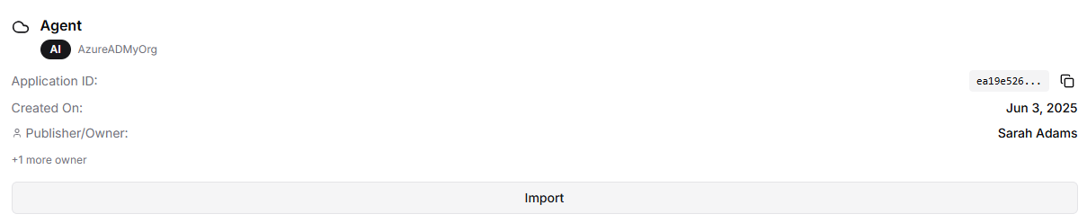 - Importing an agent prepares it for downstream monitoring and governance workflows.