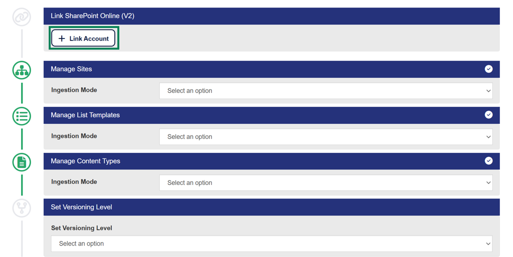 Please note that regardless of the Versioning Level set, the SharePoint Online (V2) Connector requires versioning to be set on Document Libraries to be managed.