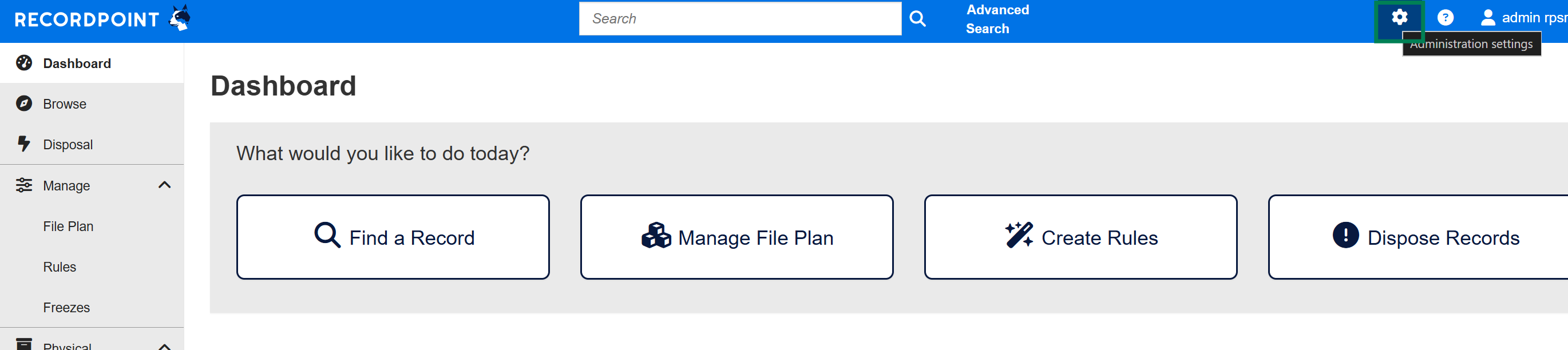Click on the Settings icon in the top right hand corner of RecordPoint.