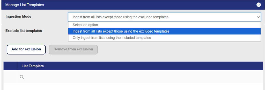 This setting controls ingestion by including or excluding lists whose template matches a specified pattern.