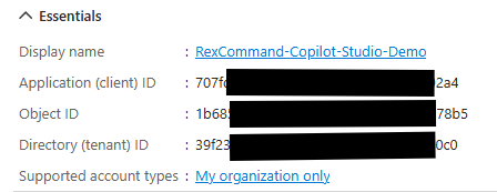 | Info: RexCommand uses the Tenant ID and Client ID from this app registration. This setup does not require a client secret or certificate. |