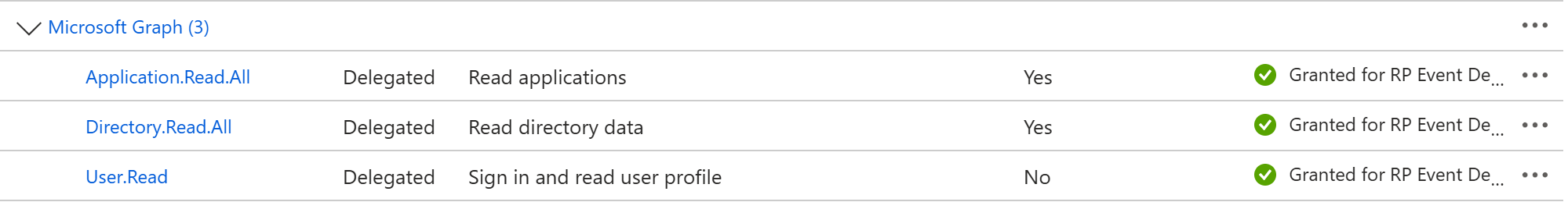 | Microsoft Graph | Application.Read.All | Delegated | Read app registrations during discovery |
