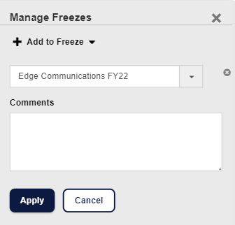 Click Manage Freezes/Holds. A side panel will appear where you can choose the scope of selection to remove from a freeze/hold. You can choose from the following options: