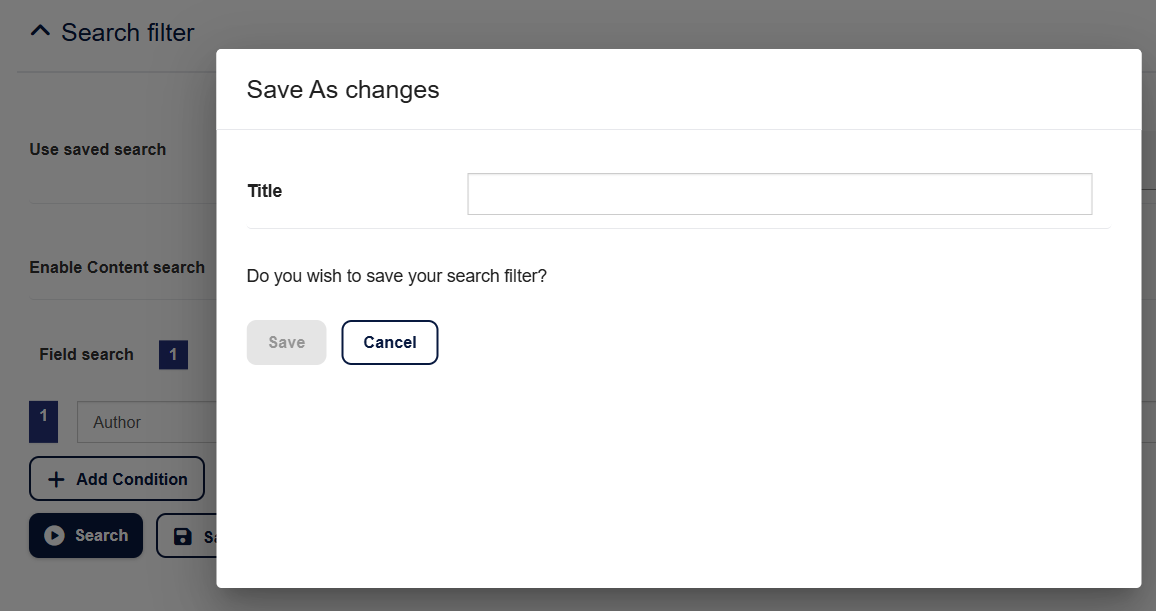 - Enter a title for the saved search if not already set.
